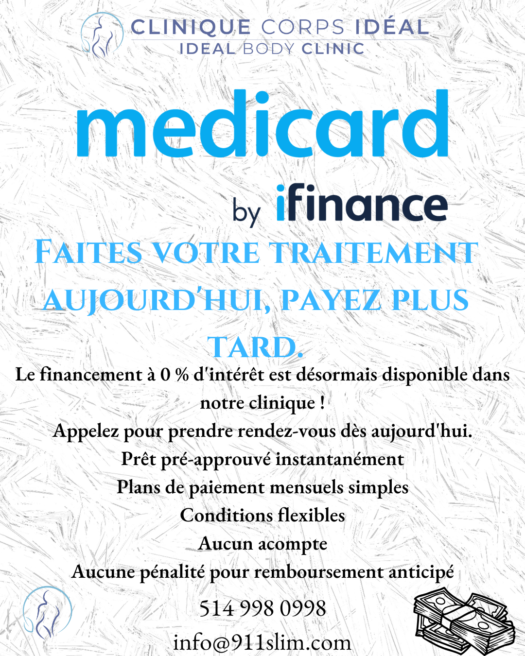 Avec nos conditions flexibles et des paiements mensuels abordables, vous pouvez investir en vous-même. Medicard, le choix numéro un au Canada pour le financement des procédures esthétiques, s’engage à vous aider à vous sentir et à avoir l’air au mieux.